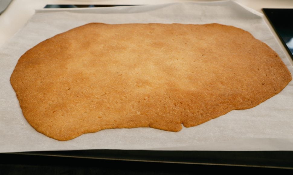 Étalez cette préparation entre deux feuilles de papier cuisson, puis piquez à la fourchette.