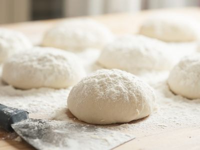 Farinez légèrement le plan de travail et pétrissez la pâte à la main pour incorporer un maximum d’air. Vous pouvez aussi utiliser un robot avec un crochet à pâte.