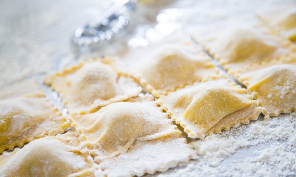 Mettez la farine dans la cuve d’un robot avec les jaunes d’œufs, puis remuez énergiquement. Ajoutez l’huile d’olive. Étalez la pâte selon la forme souhaitée avec un rouleau à pâtisserie, le plus fin possible, et faites cuire pendant 2 à 3 min dans de l’eau bouillante. Garnissez avec la farce de votre choix et servez.