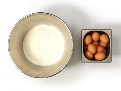 Verser la farine dans un cul-de-poule et creuser un puits. Ajouter l’œuf entier et la moitié des jaunes. Mélanger en commençant à travailler la pâte du bout des doigts, continuer avec la main, en ajoutant progressivement le reste des jaunes d’œufs.