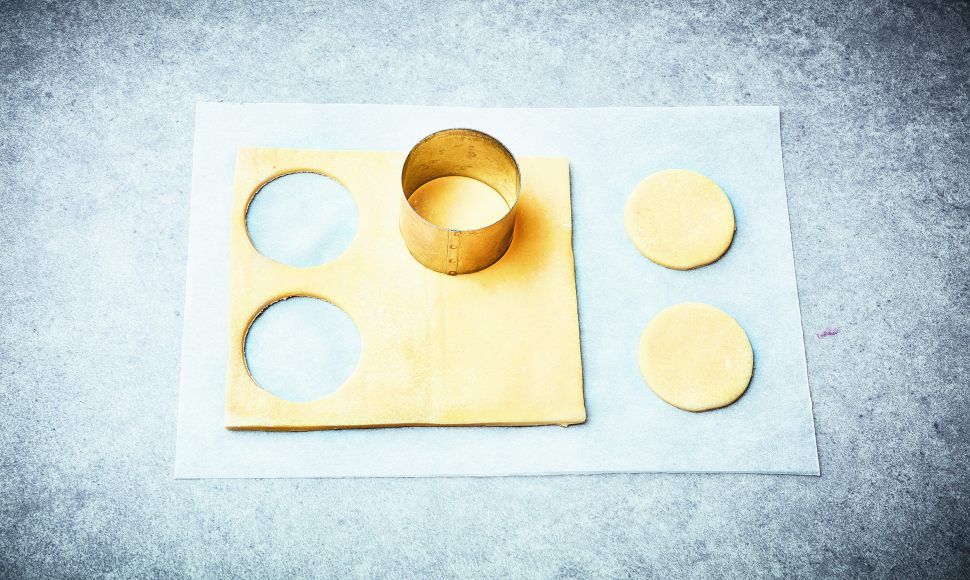 Rabattez-la une fois, puis entreposez-la au réfrigérateur pour 12 h. Le jour-même, abaissez la pâte en un rectangle de 45 Í 20 cm à l’aide d’un rouleau à pâtisserie. À l’aide d’un rouleau, tapez le beurre afin d’obtenir un rectangle de 20x30 cm, puis posez-le au centre de la pâte. Séparez « mentalement » ce rectangle en trois parts égales.