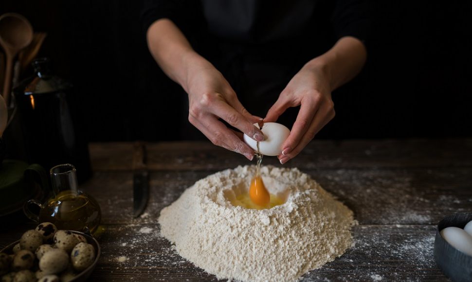 Dans le bol d’un robot, versez la farine, le sel, le sucre et le beurre et mixez. Ajoutez les jaunes d’œufs et 25 cl d’eau et mixez à nouveau. Lorsque tous les ingrédients sont bien mélangés, faites une boule avec la pâte, enveloppez-la dans du film alimentaire et laissez-la reposer au réfrigérateur pendant au moins 2 h.