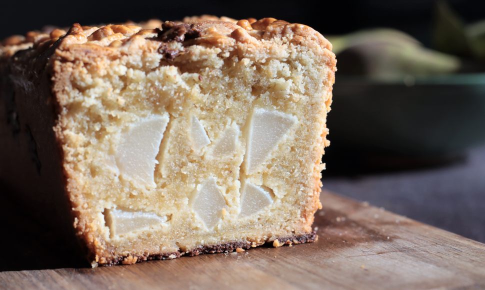 Le chef Julien Duboué a inventé le pâté en croûte sucré. Depuis lors, impossible de passer à côté. Voici une version simple et efficace, à base de poire et crème d'amande.