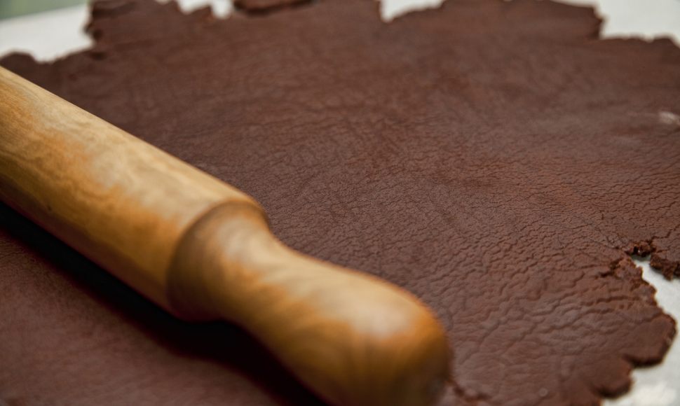 Faites ramollir le beurre sans le faire fondre en le passant au four à micro-ondes. Dans un robot pâtissier muni du batteur, mélangez le beurre pommade avec la fleur de sel, le sucre glace, la poudre d’amande et les jaunes d’œufs. Faites monter ce mélange afin qu’il soit le plus léger possible. Tamisez la farine, le cacao en poudre et la levure chimique. Ajoutez-les à la préparation en mélangeant très délicatement. Une fois que les poudres sont incorporées, évitez de travailler la pâte. Emballez dans du film alimentaire, puis laissez reposer au réfrigérateur 12 h minimum avant utilisation.