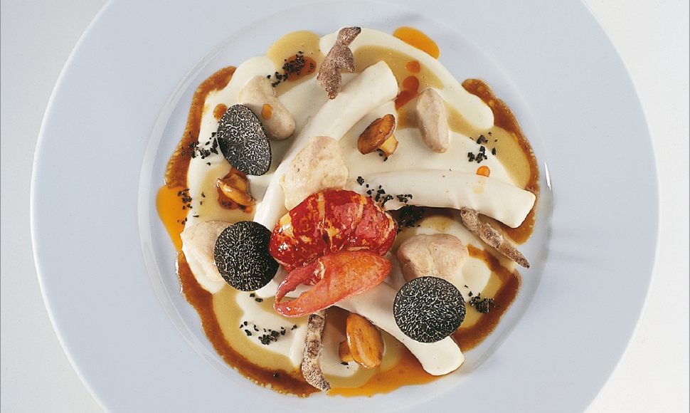 Pâtes mi-séchées crémées et truffées aux ris de veau, crêtes et rognons de coq