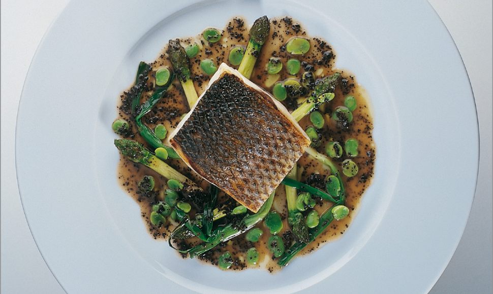 Ecailler le loup, l’ébarber et le vider soigneusement, puis le rincer sous l’eau courante et le sécher sur un linge. Sectionner la queue et la tête.