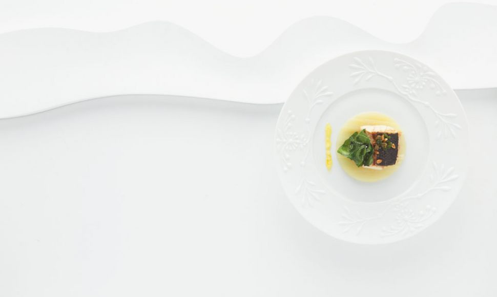 Pavé de loup de Méditerranée rôti, blanc et vert de blettes