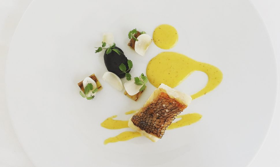 Pêche du jour purée d’ail et poireau