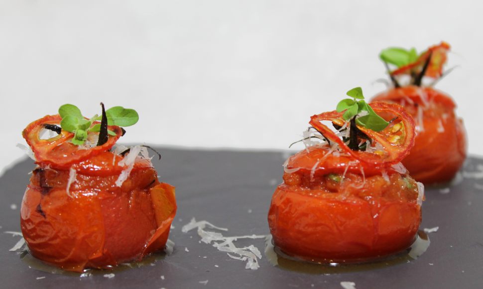 Voici une toute nouvelle façon de cuisiner des tomates farcies... Aux tomates ! Dans cette recette vous trouverez différentes textures de tomates à marier afin d'intensifier ses saveurs. Rehausser d'une pointe de marjolaine et de parmesan, elles sauront vous régaler.