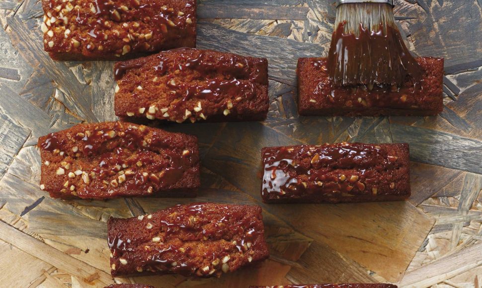 Des petits cakes au caramel et aux éclats d'amandes pour apporter du croustillant, recouverts d'un nappage caramel.