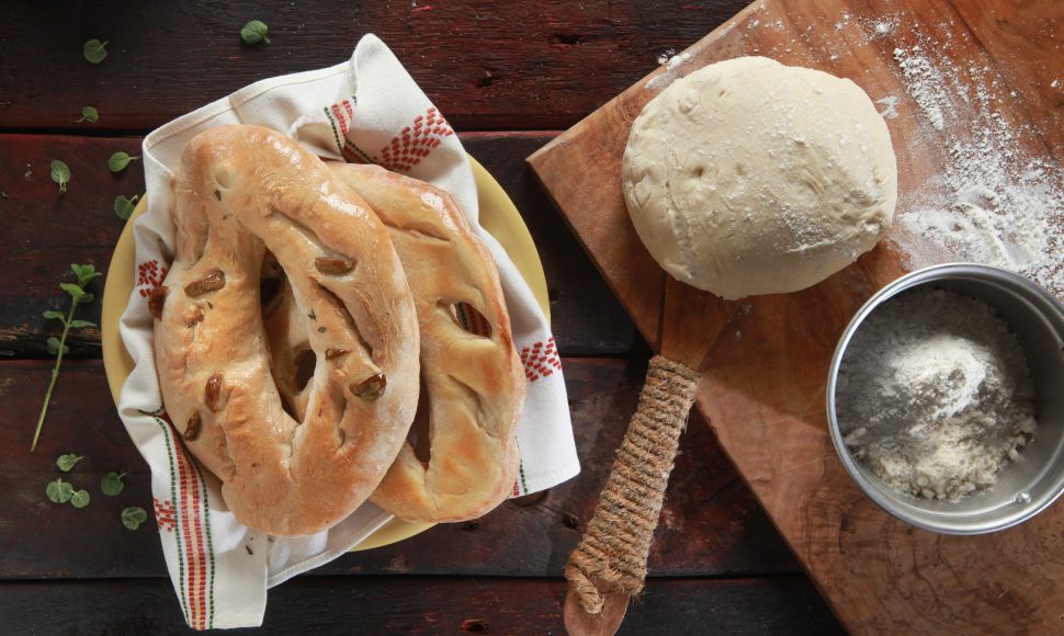 Diviser en huit parties égales et faire de longues ficelles. Retourner les bords de chaque ficelle et les unir. Les mettre sur un plat de cuisson, avec du papier sulfurisé. Recouvrir les pains à nouveau avec la couverture et laisser le plat dans un endroit relativement chaud, pendant environ 30 minutes, jusqu’à ce que les pains doublent en volume.