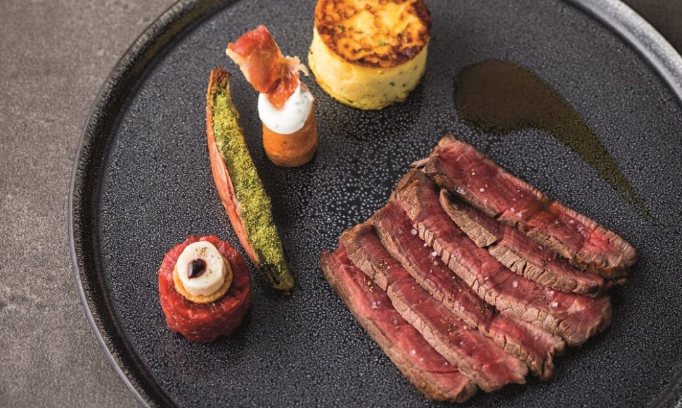 Pièce de bœuf Charolais, tartare de poivre de cassis, jus au foin
