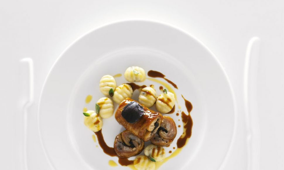 Pieds de cochon de lait, gnocchi de pomme de terre