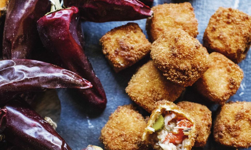 Panés et frits, des cubes de pieds de cochon cuisinés avec des piquillos, des quindillas, des cornichons et une bonne dose de vinaigre de Xérès. C'est tellement fondant et gourmand qu'on eu mangerait des kilos !