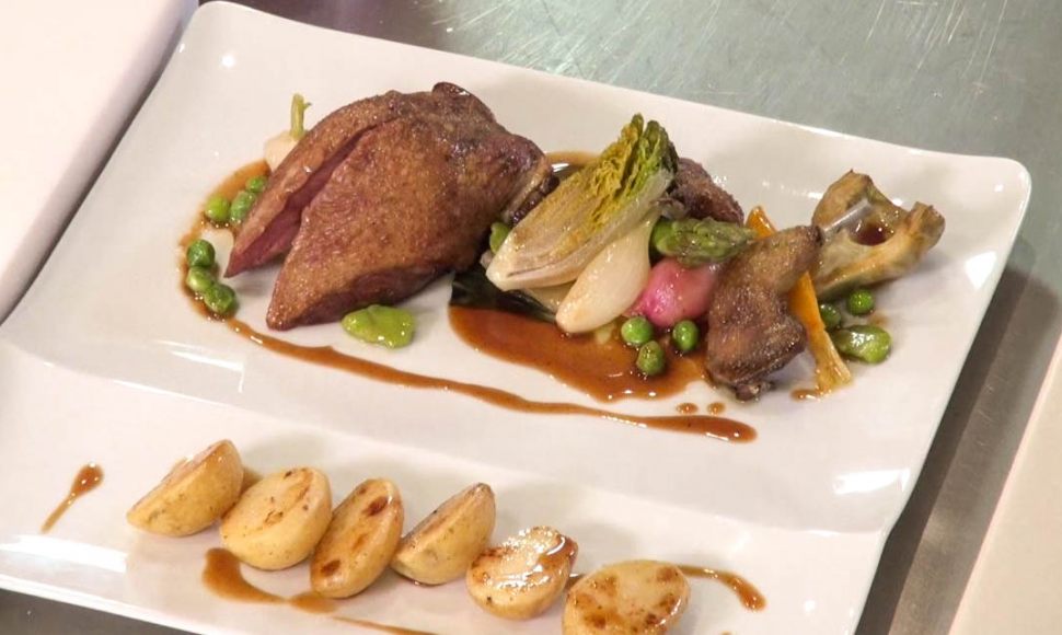 Dans cette cocotte, chaque légume cuit à son rythme, délivrant ainsi au mieux ses saveurs. Celles du pigeonneau rôti et confit, plus puissantes, s’y mêlent avec bonheur. Une assiette à varier selon la saisonnalité des légumes, le mode de cuisson reste lui identique.