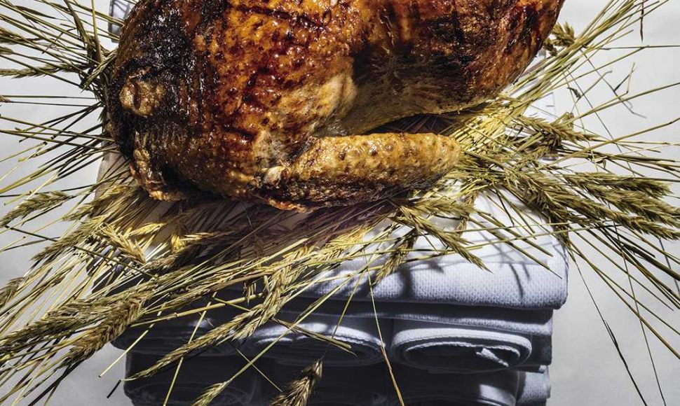 Préchauffez le four à 160 °C (th. 5-6). Marquez la pintade au barbecue ou au gril, puis garnissez-la de flouve. Enfournez et faites cuire 35 min. Laissez reposer.