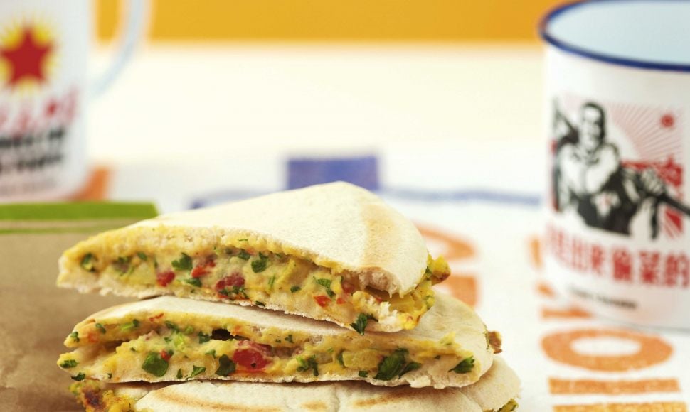 Des sandwichs pitas sucrées-salées qui rappellent les saveurs d'orient, au citron confit, poivron, houmous et coriandre.