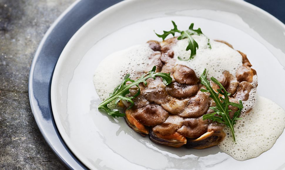 "Une fois n’est pas coutume : je ne suis pas d’accord avec mes convives ! Ils me parlent tous de ma soupe d’artichaut à la truffe noire et sa brioche feuilletée aux champignons, mais pour moi, c’est la poêlée de moules et mousserons jus terre et mer qui est mon plus grand plat - jusqu’à présent ! J’ai voulu associer le côté sec et iodé des moules à un produit qui aurait une consistance grasse et molle. J’ai essayé les mousserons, le contraste était parfait, l’association fonctionnait merveilleusement. La terre et la mer étaient ainsi associées pour la première fois dans ma cuisine ; et j’en ai retenu la leçon."