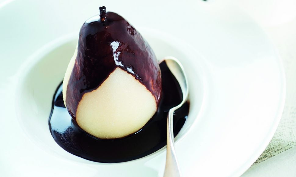 Pelez les poires à l’aide d’un couteau-économe tout en faisant attention de laisser les queues. Utilisez le couteau-économe pour vider les poires par le bas, en creusant délicatement. Sous l’eau, lissez les poires avec un grattoir afin de leur redonner leur forme initiale. Faites un sirop en portant l’eau et le sucre semoule à ébullition dans une casserole. Plongez les poires dans le sirop bouillant et laissez-les cuire entre 20 et 30 min, en fonction de la maturité des fruits. Lorsqu’elles sont bien cuites, débarrassez-les et laissez-les refroidir.