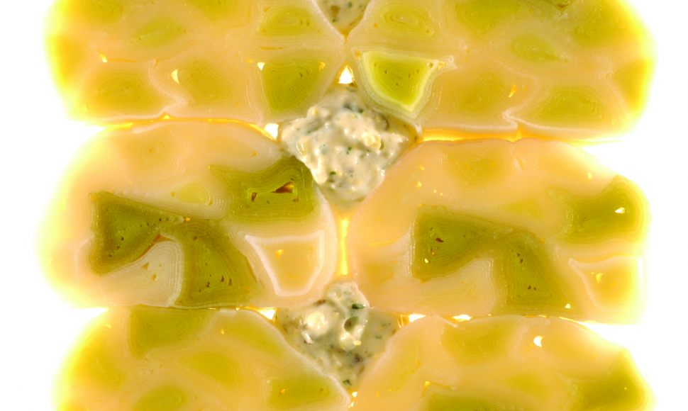 Égoutter soigneusement les poireaux, les déficeler et les presser.