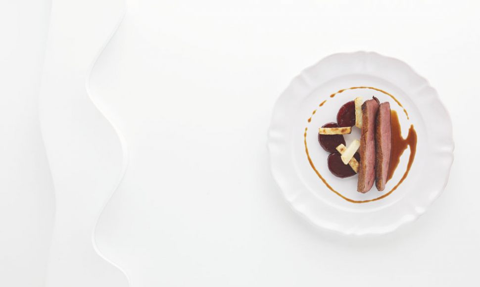 Poitrine de canard au miel de Provence, betterave, céleri, sauce aigre-douce