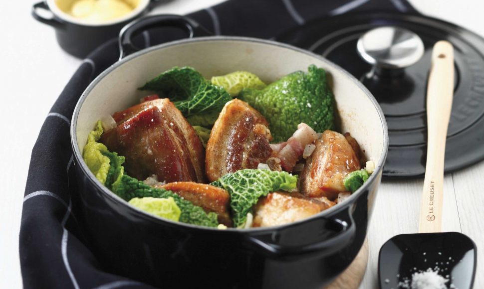 Cuisinez à la perfection une poitrine de cochon accompagnée de légumes et d'épices pour un repas d'exception.