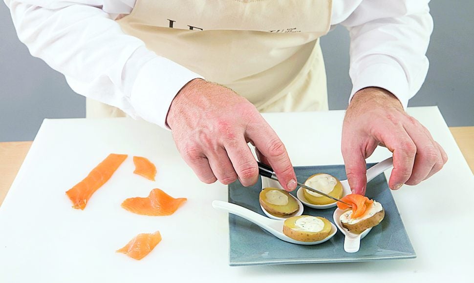 Pommes de terre roseval, saumon fumé et crème citronnée