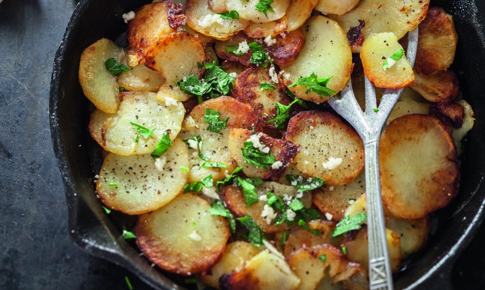 Un grand classique périgourdin qui tient en quatre produits : pommes de terre, graisse, ail et persil. Il m’a fallu rencontrer Roger pour en comprendre le secret : une double cuisson, la première à feu doux pour les enrober de matière grasse et une deuxième sur feu plus vif mais à couvert pour les faire dorer tout en les cuisant à cœur. J’allais oublier l’essentiel : la persillade s’ajoute en toute fin de cuisson !