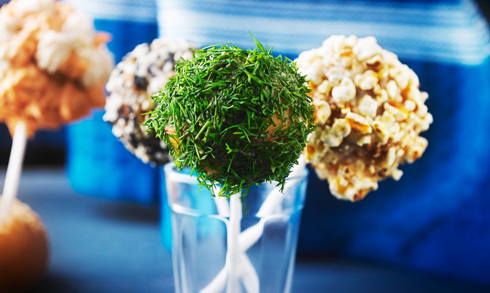 Enrober les pop cakes de tarama. A l’aide d’un pinceau, rouler une partie des petites boules dans les graines de sésame, l’aneth haché, et dans des brisures de pop corn. Ces pop cakes peuvent se conserver quelques heures au frigo.