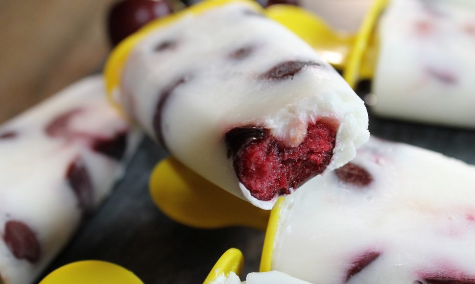 Un souvenir régressif des glaces à l'eau de l'enfance... En version encore plus gourmande, avec du yaourt grec, de la noix de coco et des cerises. A noter : vous pouvez adopter des variantes avec d'autres fruits de saison : abricots, fraises, bananes...