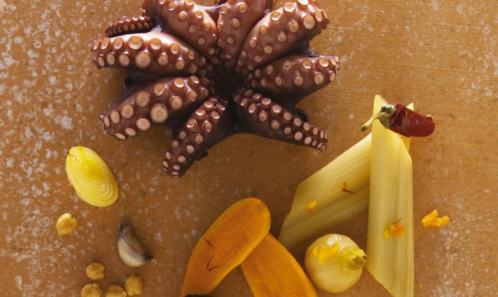 Le mélange parfois surprenant des produits de la terre et de la mer démontre la capacité évolutive d’une cuisine populaire. Ce « Putxero de polp » est une spécialité enracinée dans quelques villages de La Marina. Il est cuisiné avec des cardons, puis on y ajoute du riz en fin de cuisson qui est servi en premier plat. Nous avons conservé tous les ingrédients sauf le riz.