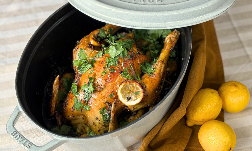 Le poulet au citron, une recette simplissime aux gourmandes effluves d'été : pour une volaille rôtie à la perfection, privilégiez la cuisson en cocotte en fonte émaillée STAUB.