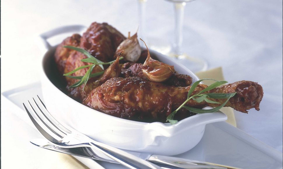 Retirez les morceaux de poulet et les gousses d’ail.