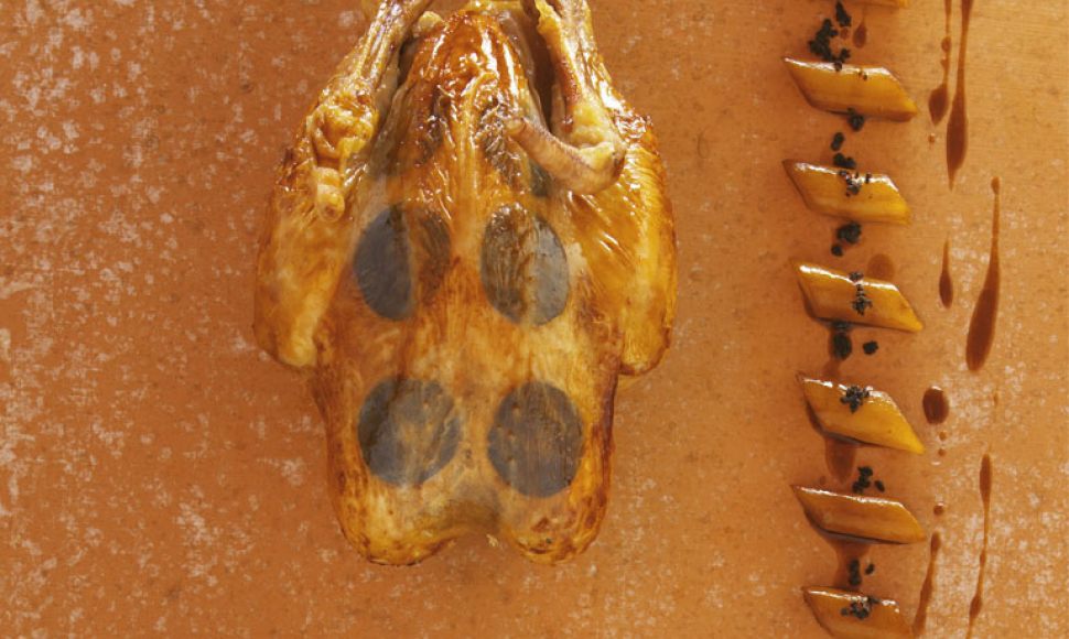 Sous ses allures bourgeoises, cette volaille réserve non seulement la surprise des truffes sous la peau mais aussi celle de sa farce où le foie gras se marie avec la ciboulette. Quant aux salsifis, ces légumes que nous n’oublions pas, ils mettent autant en valeur la volaille que sa farce.