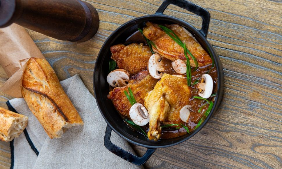 Les recettes dites « chasseur » se caractérisent par une cuisson « sautée » et sont accompagnées d'une sauce aux champignons, échalotes, vin blanc et tomate. Ici, la cheffe Chloé Charles, partage ses secrets pour cuisiner un poulet fermet Label Rouge et réaliser un fond de volaille dans les règles de l'art.