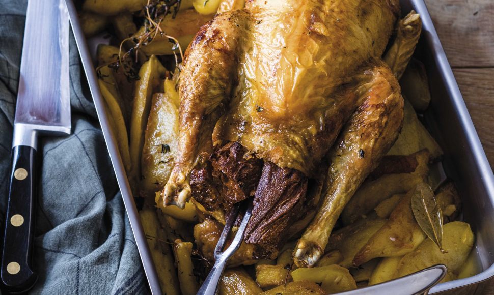 C'est le plat qu'on rêve de déguster lors d'un déjeuner dominical. David Rathgeber ne lésine pas sur l'ail et accmpagne son poulet rôti... de pommes de terre revenues dans de la graisse de canard.