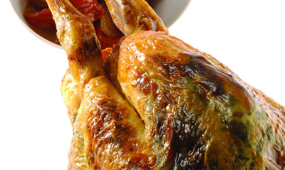Poulette jaune des landes fourrée sous la peau au beurre d’herbes fraîches