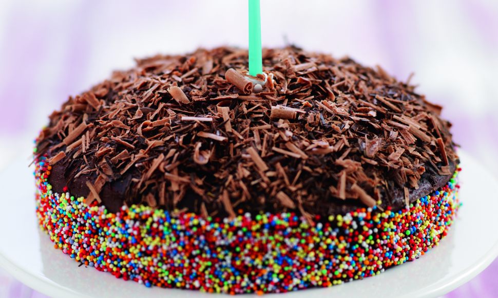 Sortez le gâteau et démoulez-le sur une grille. Laissez-le refroidir. Versez 4 à 5 cuillerées à soupe de billes de sucre de couleurs dans une assiette. Avec un couteau économe, coupez 2 carrés de chocolat noir et 1 carré de chocolat au lait en petits copeaux. Cassez 15 g de chocolat noir en morceaux et faites-les fondre au four à micro-ondes avec 2 cuillerées à soupe de lait. Avec un pinceau, tartinez régulièrement le bord du gâteau de ce chocolat fondu, puis collez-y des billes de sucre. Avec une spatule, étalez bien régulièrement le reste du chocolat fondu sur le dessus du gâteau. Parsemez le gâteau de copeaux de chocolat.