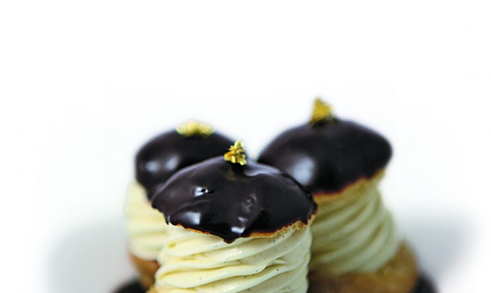 Fixez la douille lisse n° 10 sur la poche à douille et remplissez la poche de pâte à choux. Pochez 12 choux de 4 cm de diamètre sur la plaque à pâtisserie, en les espaçant de 3 cm.