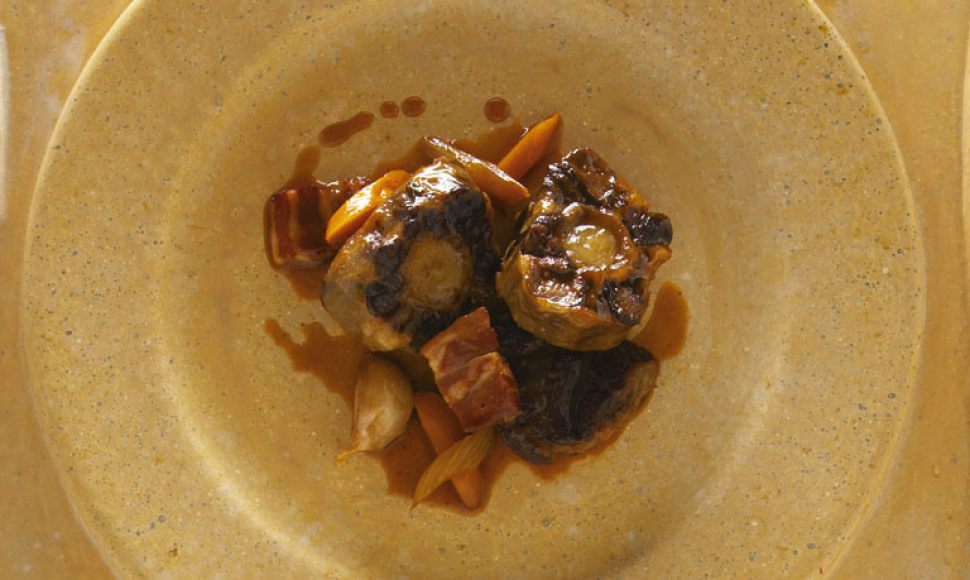 Grand classique de la cuisine romaine et spécifique de la ville même. Selon le dire commun, la recette serait née dans le « Rione Regola » quartier du centre de Rome qui longe la rive gauche du fleuve à la hauteur de l’île Tibérine, autrefois habité par les tanneurs, appelés dans le dialecte romain « vaccinari ». Nous avons interprété la recette en l’allégeant de sa sauce tomate.