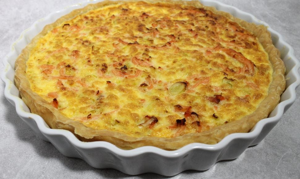 En un rien de temps, concoctez une quiche gourmande et savoureuse au saumon fumé et au poireaux. Vous n'avez plus qu'à la servir en plat de résistance avec une petite salade verte assaisonnée simplement d'huile et de jus de citron avant de passer à table.
