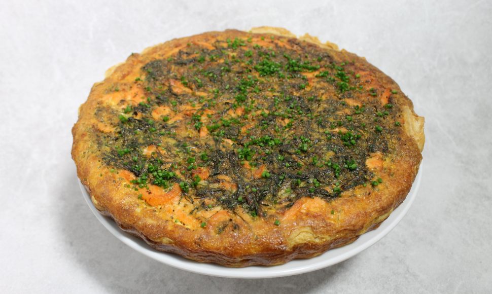 Rien de plus simple qu'une quiche maison. La particularité de cette recette est que vous pouvez réaliser le saumon fumé comme la pâte feuilletée dans votre cuisine. Il n'y a plus qu'à ajouter le traditionnel mélange crème fraîche / œufs et les herbes avant d'enfourner. Une petite salade pour l'accompagner fera parfaitement l'affaire.