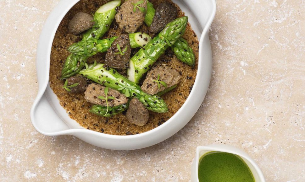 Quinoa d’anjou, asperges de roques-hautes, morilles