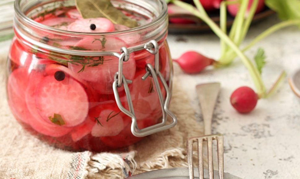 À ébullition, ajoutez les radis et laissez refroidir hors du feu. Laissez les radis dans le liquide au moins plusieurs heures.