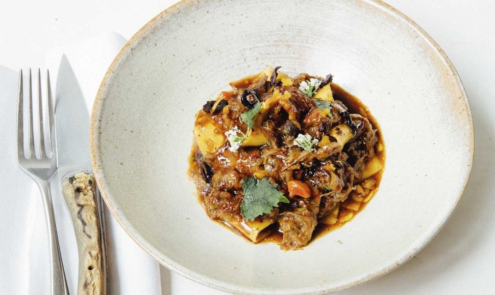 Faites suer les oignons, la carotte et l’ail dans une casserole jusqu’à ce qu’ils soient tendres, puis déglacez-les avec le vinaigre, le vin et le rhum et laissez réduire. Ajoutez la viande et le jus de cuisson, et faites réduire jusqu’à l’obtention d’une consistance épaisse. Ajoutez ensuite les autres ingrédients, sauf l’ail confit et le liquide de citrons confits. Faites cuire le ragoût pendant 30 min à feu moyen en remuant régulièrement.