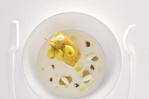 Raviole d’agrumes jus de citronnelle et jus de fruit de la passion frais