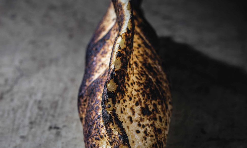 Akrame Benallal garnit ce chausson de pâte d'amande de crème au citron avant de le passer au chalumeau. Trompe l’œil garanti !