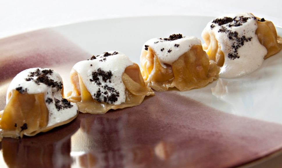 La raviole est aérienne. C’est un condensé de saveur, entre le foie gras et la truffe enveloppés dans une fine pâte à base de farine de riz. Il faut la déposer entière dans la bouche et la déguster en la mâchant tendrement.