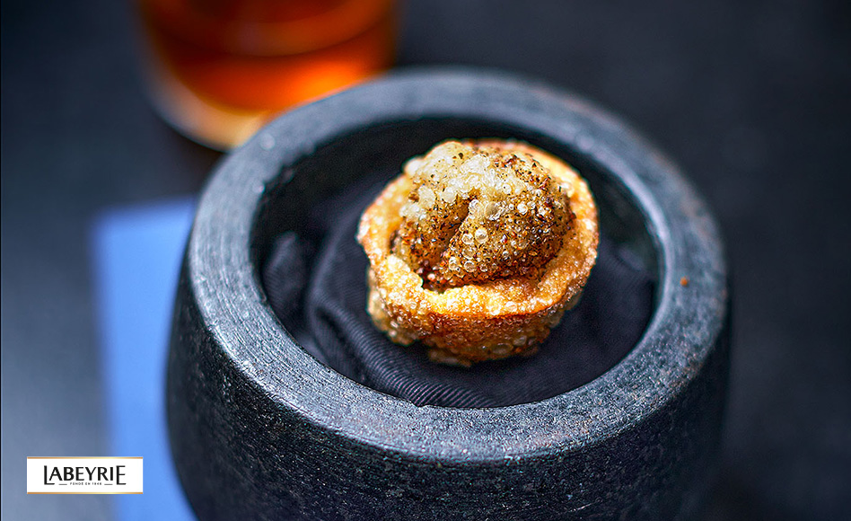 Précuire 4 minutes dans le bouillon de volaille. Rouler dans une poudre de lentille déshydratée et faire frire dans de l’huile de pépin de raisin. Assaisonner en fin de cuisson .