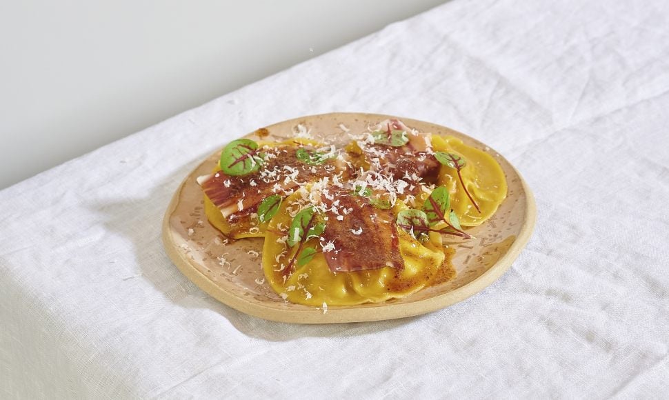 Ravioles pata negra et pomme de terre au piment d'Espelette